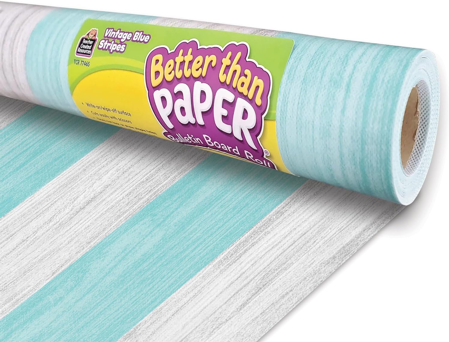 This colorful, vintage design will create a positive learning environment for students. This revolutionary non-woven fabric makes creating beautiful bulletin board backdrops quick and easy! The lightweight material is simple to hang—no more struggling with paper that wrinkles and tears. Attach border trim, accents, posters, and student work with staples or tape and remove without ripping or leaving conspicuous holes. The durable write-on/wipe-off surface can be used again and again. Roll measures 4' x 12'.