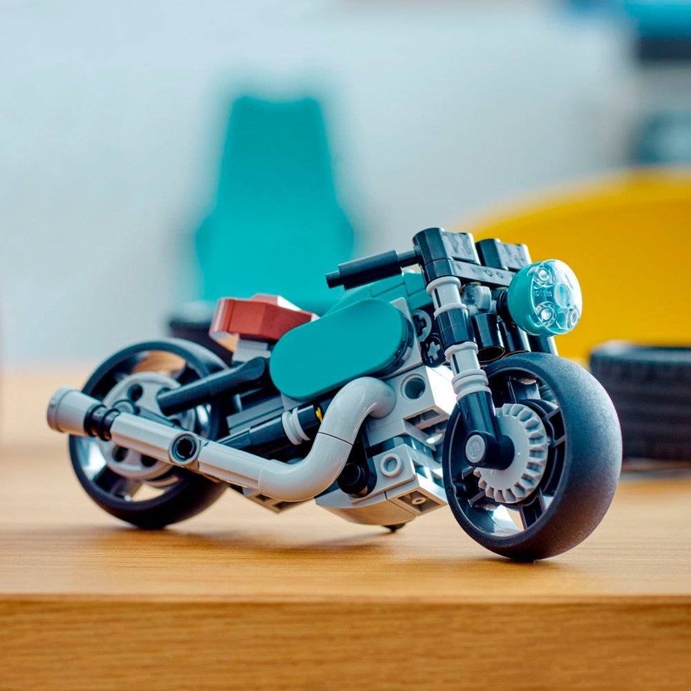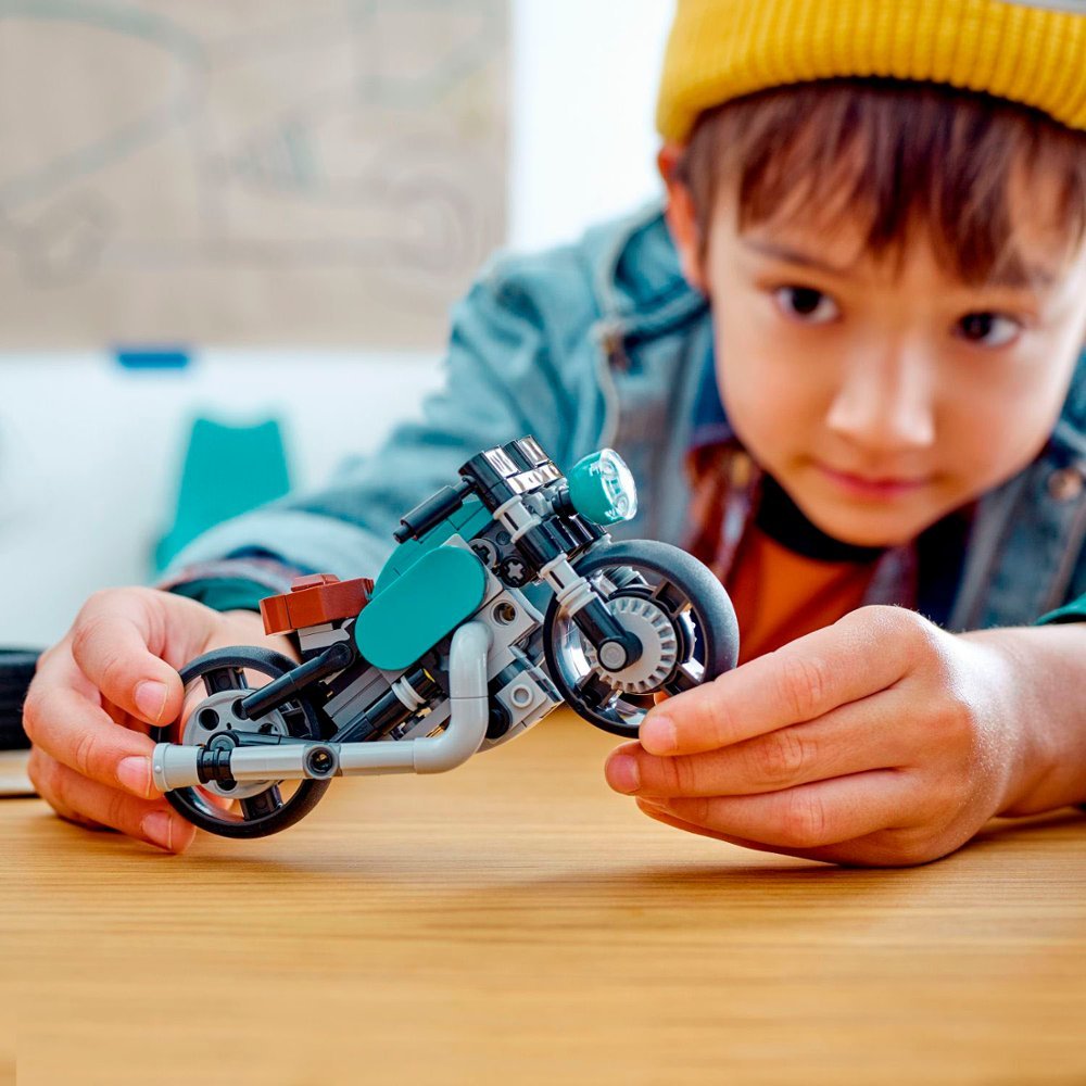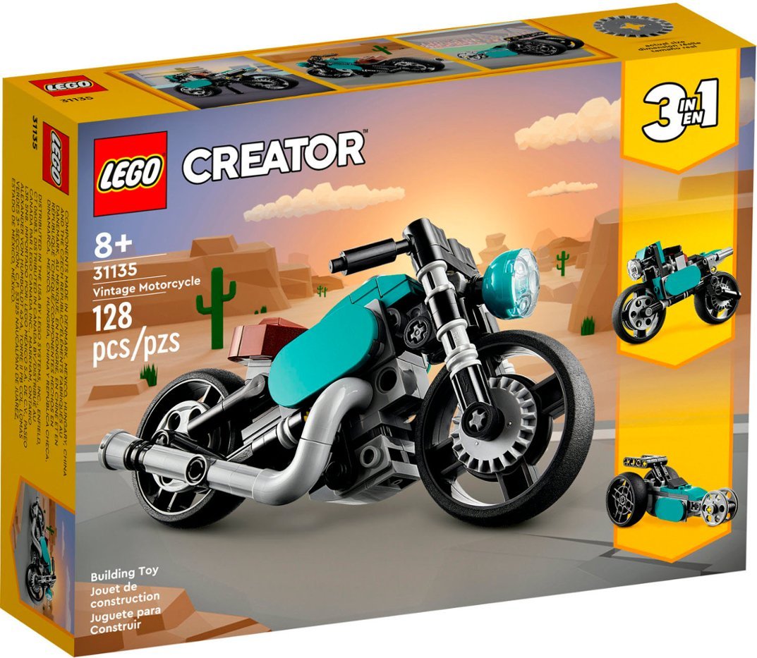 Kids and lovers of cool vehicles aged 8+ can enjoy countless hours of racing action with this brilliant LEGO Creator 3 in 1 Vintage Motorcycle (31135) playset. The classic toy motorcycle features handlebars, a moving front wheel, headlights, a large exhaust and a kickstand for display. Fun toys for fans of superfast vehicles LEGO fans have the choice of 3 different build-and-play experiences with this Creator 3 in 1 construction set. They can build the impressive Vintage Motorcycle and then rebuild it into a street bike with a kickstand for display, create a top fuel dragster to take part in exciting races – or even use their imaginations to create something new with the bricks. A fun digital experience for LEGO fans Download the LEGO Builder app and step into a new world of building fun where kids can zoom in and rotate models in 3D, save sets and track their progress.