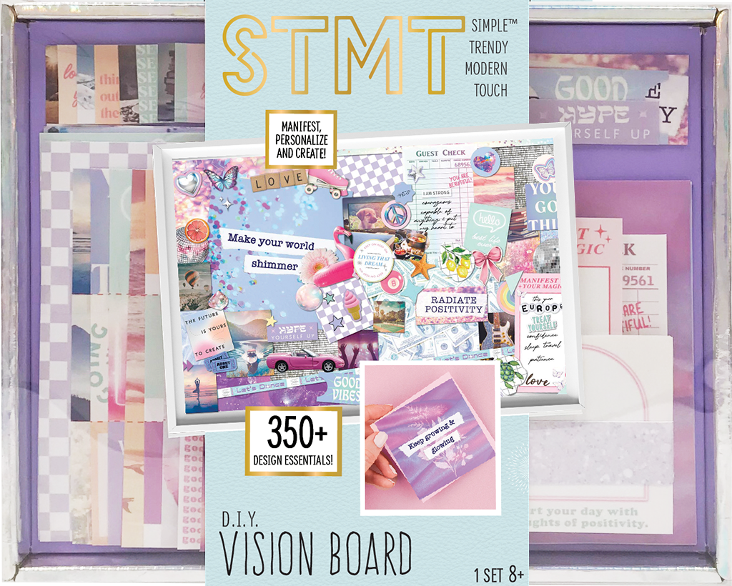 Inspirational and Customizable: Features pre-printed designs, quotes, and cards for personal mantras, allowing for an evolving, positive vision board.