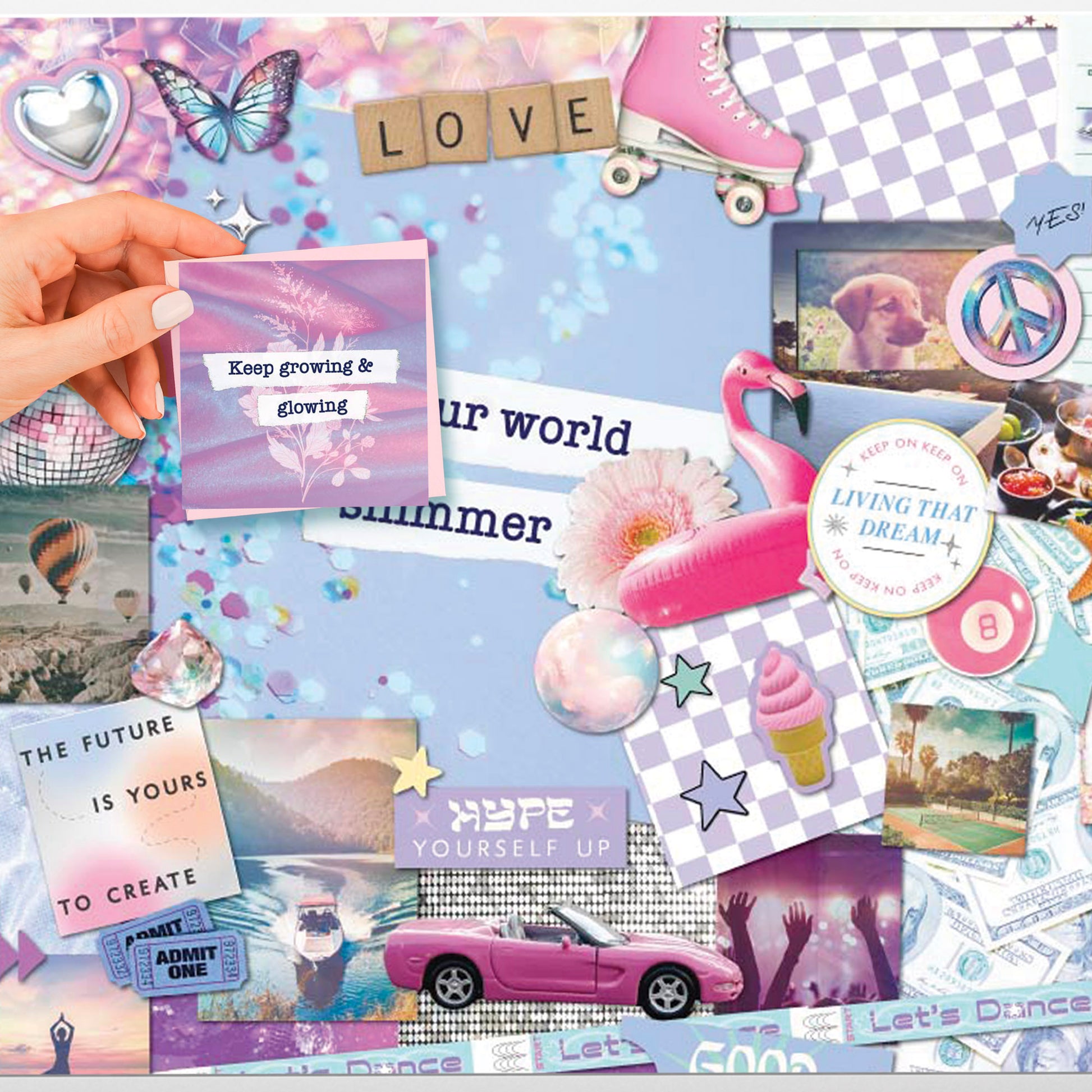 Packed with over 350 design essentials, including a vibrant assortment of stickers, inspiring pre-printed pages, stunning die-cut shapes, and even decorative tapes and glue, this isn’t just a kit — it’s a powerful tool for manifesting your dreams.