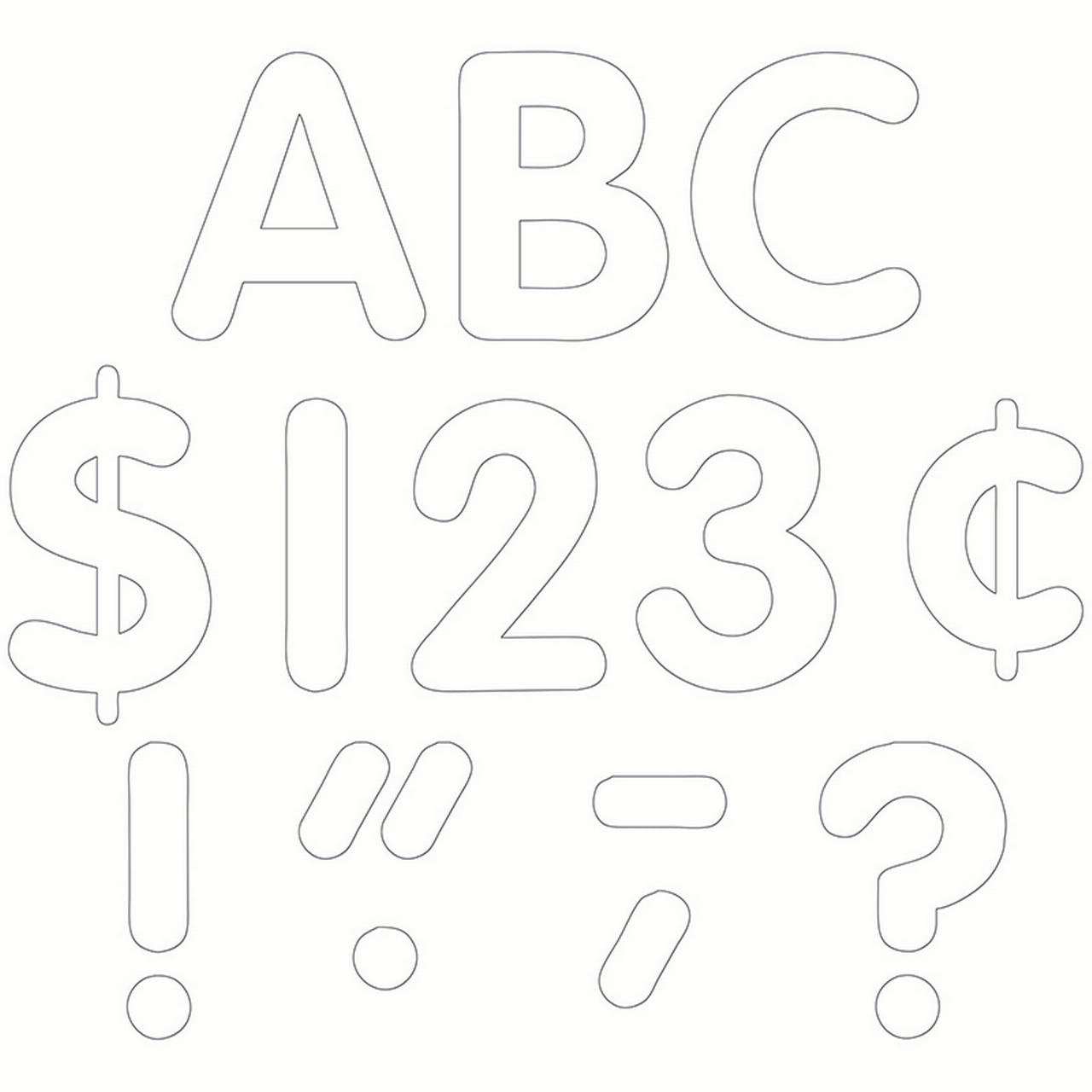 Use these letters to create bulletin boards classroom centers signs banners and other displays. They punch out easily and are coated for durability. Each letter is 4. Included: 56 uppercase letters 10 numbers 0-9 15 punctuation marks 81 pieces total.