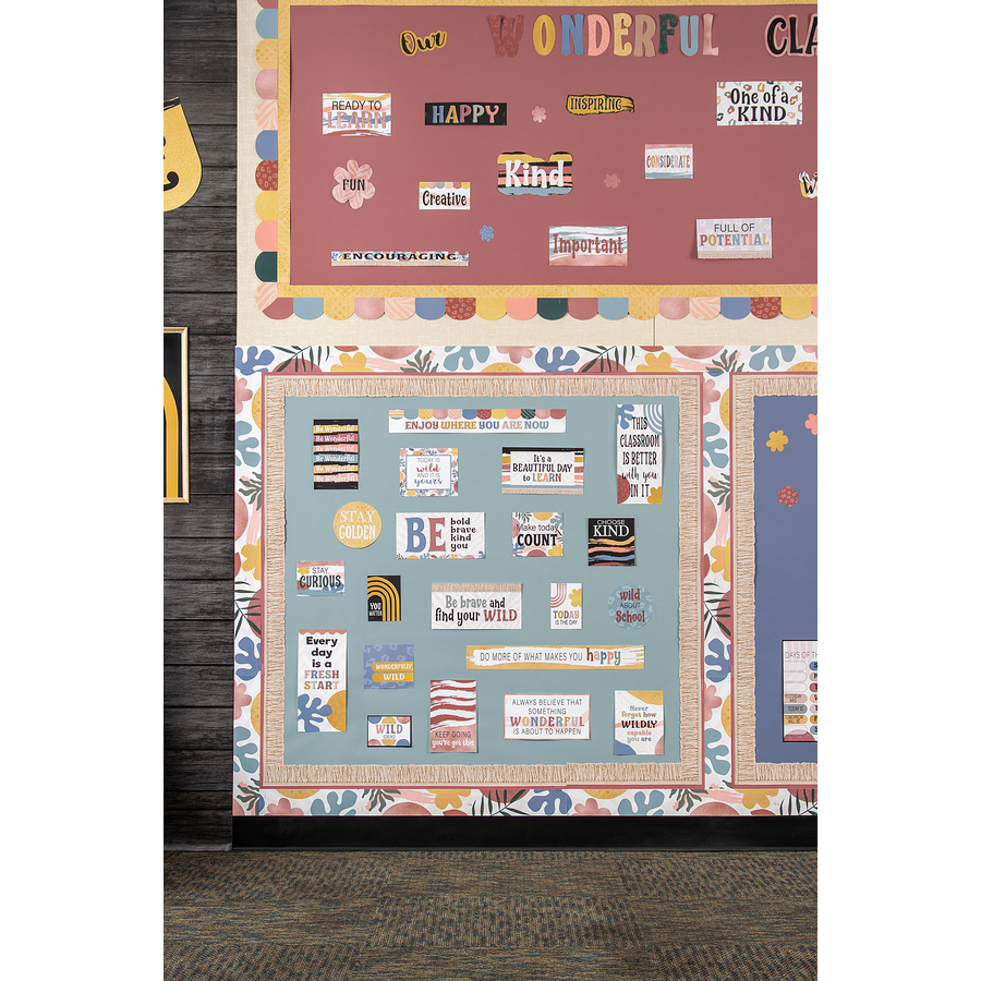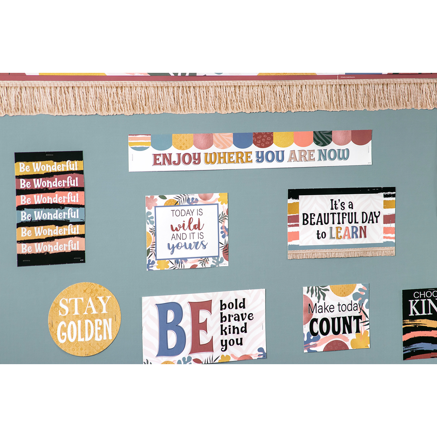 This motivating mini bulletin board uses modern style to keep a positive classroom vibe for your students. Largest piece measures 20⅛’’ x 2¾’’. 21 total pieces.