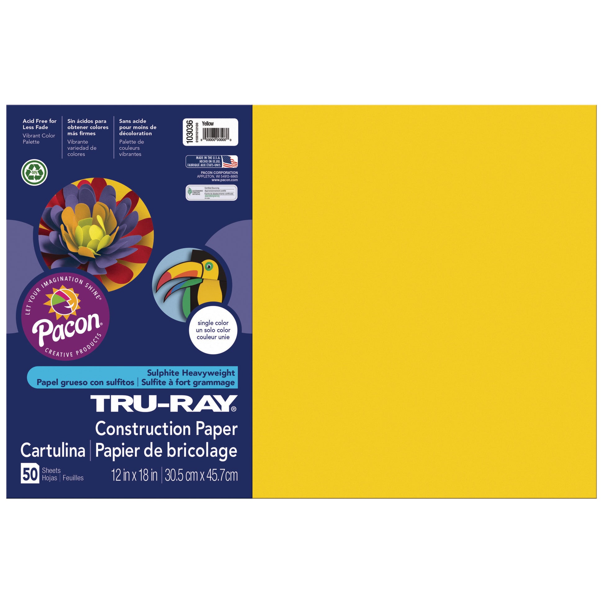 Create something great with heavyweight construction paper from Tru-Ray. Heavyweight 100 percent vat-dyed sulphite paper features longer stronger fibers that are tough enough to take scoring folding and curling without cracking or tearing. The paper s superior fade resistance keeps projects brighter and fresher for longer. Pack of construction paper in Yellow color includes 50 sheets measuring 12 x 18 inches each.